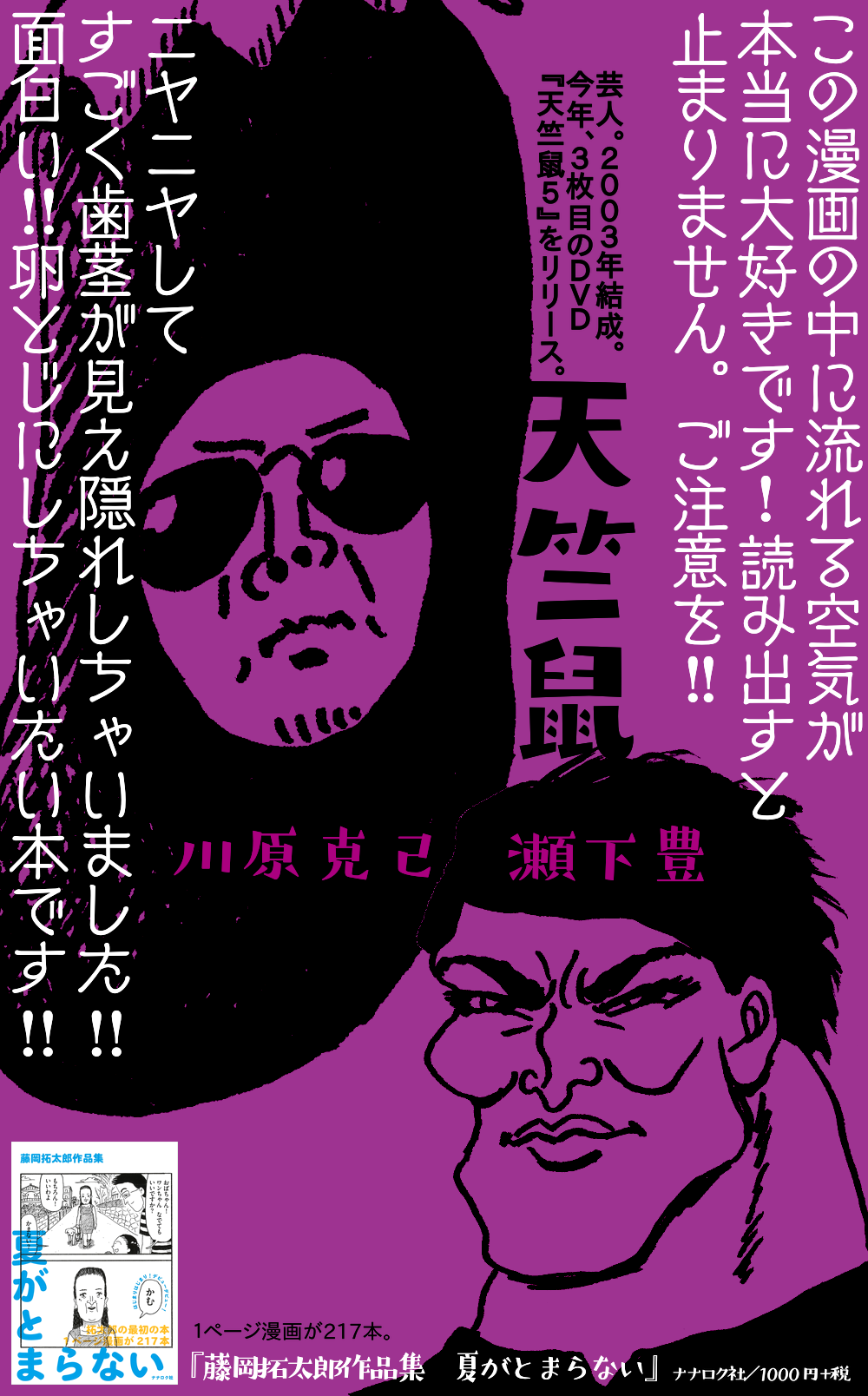 藤岡拓太郎さん(@f_takutaro)のコミック『藤岡拓太郎作品集 夏が止まらない』(ナナロク社)のサイン+イラスト本が入荷しました。フリーペーパーも同時入荷です。明日24日からはコミックコーナーでミニパネル展も始まります。皆様のご来店お待ちしております。 pic.twitter.com/JhVtdJQcVq